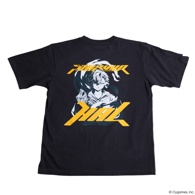 肌触り滑らかな生地のTシャツにフロントにはShadowverse: Worlds Beyondロゴをモチーフとしたwith mellowロゴを刺繍、背面にレヴィオンの迅雷・アルベールの衣装を着用した渋谷ハルのオリジナルイラストをプリント⚡️